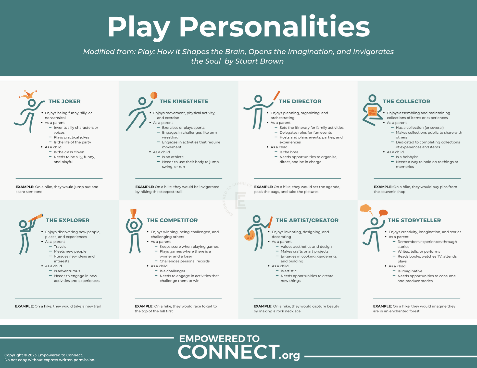 The Play Personalities digital download helps us understand the many different ways adults and children can play, providing a pathway for connection for children and adults with all types of interests.